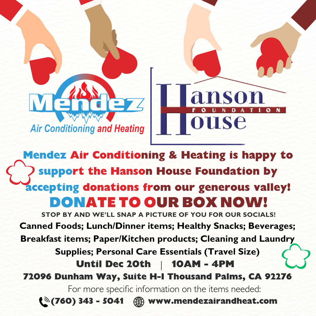 Mendez Air Conditioning and Heating is your one-stop source for all your HVAC needs for your home or business. Wither you need AC Repair or New Air Conditioning installation, we service, Palm Springs, Cathedral City, Rancho Mirage, Palm Desert, La Quinta, Indio, Desert Hot Springs, or anywhere in the Coachella Valley we are here you will find professional advice, certified trained technicians, and help you make intelligent decisions with your heating and cooling system. We repair, replace and install all brands and models. Let us prove to you that we are the top choice when it comes to A/C, heating, duct cleaning, and indoor air quality. Call (760) 343-5041 and take advantage of the same-day service guarantee! Call us today, see us today!